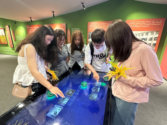 科技馆一共有两层,第一层是总体介绍袁隆平院士的科学成果——杂交水稻,包括杂交水稻的由来、品种类别、推广应用过程等等;第二层则是更多地展示袁隆平院士的个人成果,包括袁隆平院士所获奖杯、荣誉和来到科技馆的学生对袁隆平院士的缅怀等。在进入科技馆之前,苟明娇首先为同学们简要介绍了袁隆平院士的生平事迹,让大家对这位杰出人物有了更加深入的了解。随后,在苟明娇的带领下,同学们依次参观了科技馆的各个展区,通过观察实物展示、听取讲解、互动体验等方式,全面了解了杂交水稻的培育种植流程,了解袁隆平院士的科研坎坷之路中的不易,同学们不禁感慨,袁隆平院士让中国14亿人口都吃饱饭,不再忍饥挨饿,是一件十分伟大的事情。