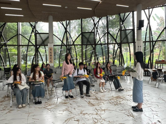 展厅参观结束后,苟明娇带领学生来到“禾下课堂”对本次活动进行谈感悟、话分享。苟明娇提到,作为青年大学生,虽然生活在一个幸福美满的时代,但要时刻谨记先辈们付出的心血和汗水,守好十八亿亩耕地红线。她还提到,对于农业劳动的了解,不能仅限于书本知识,要亲自实践感受劳动的辛苦和付出。要更加珍惜粮食,尊重劳动成果,关注国家农业发展和粮食安全。2023级本科网络与新媒体专业04班学生李文志分享到,通过本次实训课,对袁隆平院士的科研精神和创新精神感到由衷敬佩,要以袁隆平院士为榜样,努力学习科学文化知识,积极投身于科技创新和劳动实践。2023级本科网络与新媒体专业04班学生周曼琳表示,中国人的饭碗要牢牢端在自己手里,在平时生活中要更加节约粮食。