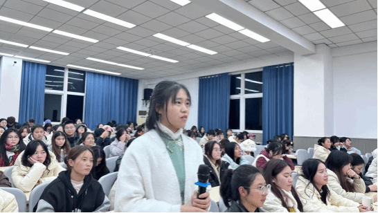 互动环节,同学们踊跃参与到活动当中,吴铮以其深厚的学术底蕴和丰富的实践经验,耐心回答同学们的疑问,讲解了吟诵的技巧,带领大家感受吟诵的韵律之美,传达了古典诗词的意境与情感,激发了同学们对中华优秀传统文化的兴趣与热爱。