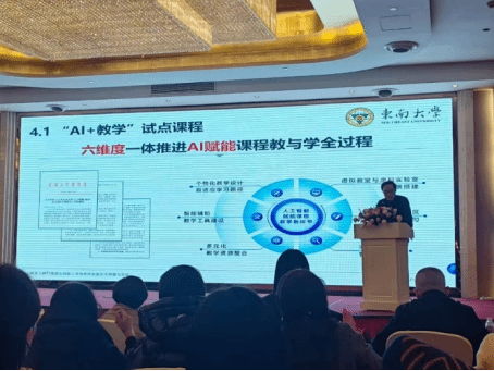 会上,东南大学陆金钰教授在会上发表了题为“AI赋能拔尖创新人才培养体系的思考与实践”的报告。陆教授强调了AI时代对教育模式和教学理念的深刻变革,提出要培养学生批判性思维、自主学习能力和探究式学习能力,从传统的学知识转变为强能力。