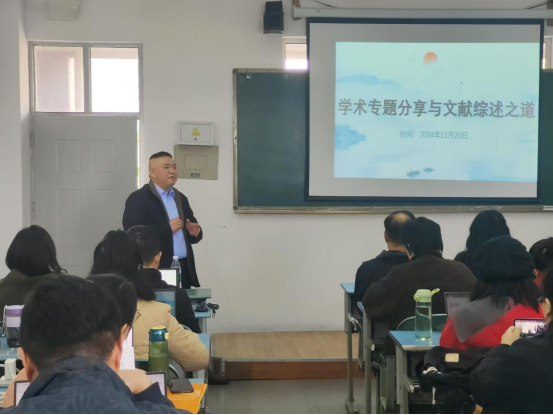 11月20日14:00-16:00,现代服务管理学院在3301教室举办了一场以“学术专题分享与文献综述写作之道”为主题的学术交流活动。本次活动由邓玉林教授主讲,旨在为学院师生提供文献研究和论文写作的专业指导,提升学术研究能力,为学校的高质量论文产出赋能。活动现场气氛热烈,师生互动积极。
