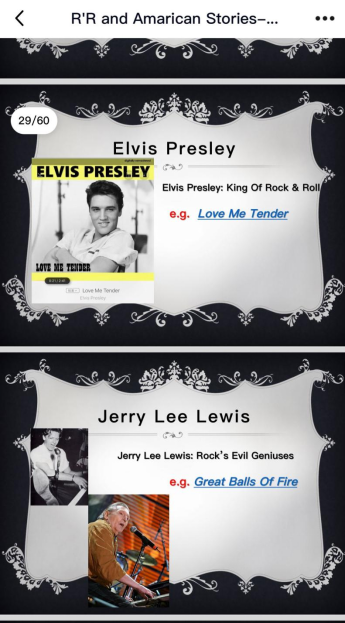 讲座中,屈莉通过“Rock And American Stories”主题给大家讲述了美国的历史文化知识,“当时的美国青年常通过创作的‘摇滚’歌曲表达个人对社会的认识、看法,摇滚乐的发展从一定程度上反映了美国当时的历史文化发展”。她鼓励同学们从美国本土音乐中的歌词去了解美国文化,同时建议同学们在学习英语的过程中,可以通过轻松有趣的方式去了解西方文化。