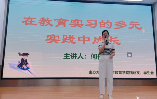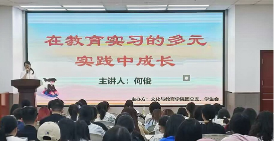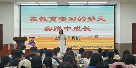 为强化小学教育专业学生的教学能力和专业素养,推动教育教学质量发展,并提升学生综合素质与个人能力,文化与教育学院团总支、学生会于7月4日在实验楼110教室成功举办了以“在教育实习的多元实践中成长”为主题的小学教育实习培训。本次活动由学院文杨老师主持,邀请到绵阳实验小学副校长、涪城路校区执行校长何俊担任主讲嘉宾,文化与教育学院院长助理兼教育系主任羊媛、教师文杨出席,共计80余名学生积极参与。