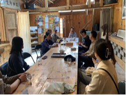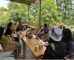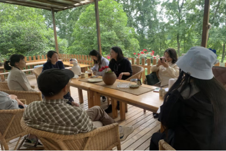 最后,团队与农民女作家、当地书香民宿主人卢树盈进行了深入交流,从当地村民到成都市作家协会会员身份的转变,与卢树盈的交谈中感受到极强的乡土文化的认同感和自豪感,这无疑是文化振兴的最好说明。