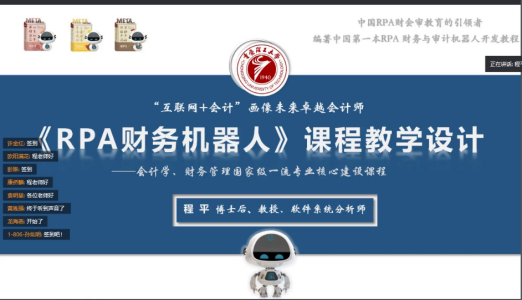 重庆理工大学会计学院副院长程平主讲。程平从新时代的背景变革、会计人才培养转型的探索及教学实践成果等方面对“互联网+会计”对中国会计教育改革的影响进行了分享。同时从RPA财务机器人的内涵、《RPA财务机器人》教程解析、《RPA财务机器人》课程教学设计及课程配套生态与相关支持四点对《RPA财务机器人》课程体系的设置、课程的开设及建设方面的先进经验进行了详细的讲述。