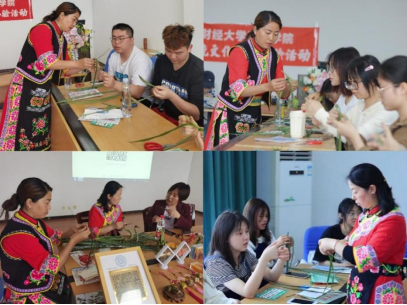 为弘扬传统文化,传承草编技艺,实现产教深度融合,创新协同育人,5月10日,西财天府传统技艺(羌族草编)文化研究与创新中心首次教学与体验活动在图书馆会议室举办,活动邀请到了北川羌族草编传承人江福容和吴敏,同时,受邀参加的还有图书馆副馆长武同雁、四川传统文化研究中心主任沈德存以及图书馆老师,本期活动共27名同学参加。