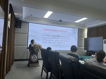 我校图书馆副馆长武同雁在《高校优秀传统文化传承模式探究》专题报告中从图书馆在传承中华优秀传统文化中的责任与担当出发,总结了我校图书馆将优秀传统文化融入阅读推广、引入课堂与课程建设、以四川传统文化研究中心为平台,深入开展优秀传统文化传承工作等方面的实践经验,最后和各位专家探讨了如何进一步推进中华传统文化的创造性转化和创新性发展。