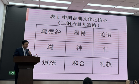 讲座中,武波通过引用中国古代的经典著作、思想家和哲学家,深入浅出地解析了中国传统文化的丰富内涵和智慧精华。他指出,“中国传统文化不仅包括平时常见的文学作品,如《西游记》《水浒传》,还包括《易经》《道德经》等哲学经典和孔子、老子等思想家的思想体系,这些都是中华优秀传统文化的代表”。随后,武波进一步从《易经》和国学的角度,对“道统(世界观)、和合(方法论)、礼教(可持续的保证)”三个方面进行了详细阐述,并强调了国学修养在当今社会中的重要性。他深入分析了中国文化所推崇的和与合,并通过解读《易经》中的哲学智慧,引导大家探寻中华文化的博大精深。此外,他还从中国文化基因“《易经》的复兴”入手,提出了自己独到的见解和修正意见,探讨了多处中国文化特质的翻译问题。通过这样的信息呈现,武波生动形象地展现了中华文化的深远影响,以及中国传统文化在当今时代依然具有的重要价值和意义。