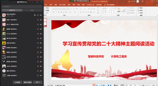 阅读活动中,老师们通过线上线下共同学习党的二十大的报告、二十大党章修正案,围绕报告中提出的新思想、新理念、新观点进行讨论。作为高校教师,作为学生的班导师、辅导员,需要始终坚持为党育人,为国育才,主动引导青年学生立大志,明大德,成大才,为加快建设教育强国、科技强国、人才强国贡献力量。