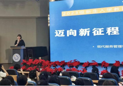9月4日,现代服务管理学院在学术报告厅为新生开讲“院长书记第一课”。讲座由学院党总支书记倪娅、副院长何亮主讲,2023级新生辅导员老师牟文浩、赵颖和全体新生参加。