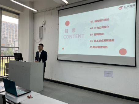 4月22日下午,会计学院联合学校就业指导中心面向本期课程学生和学院暂未就业学生组织开展了深圳市汇合发展有限公司招聘宣讲会,此次招聘宣讲会由深圳市汇合发展有限公司成都分公司负责人李承宗进行宣讲。宣讲会上,李承宗从招商银行创建历史背景出发,通过播放宣传片、PPT展示等方式向同学们介绍了公司概况、企业文化、校招岗位、员工职业发展通道、福利待遇、员工晋升及校招流程等,在答疑交流环节中详细了解与会同学的需求,对与会同学提出的问题进行解答。
