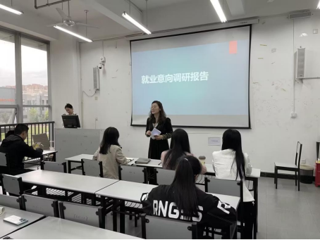 4月23日,本期课程进入考核阶段,考核采用就业意向调研汇报形式开展。学生通过于4月20至21日所做的个人就业意向调研进行汇报,每人汇报时间5分钟,汇报结束后由毕业班辅导员团队进行提问和点评。通过此次汇报,学生对个人目标行业的市场环境有了更清晰地认识,有助于学生在提升个人求职技巧和方法的同时,对企业用人标准进行深入了解,找准个人定位。
