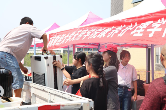 为保证迎新工作的顺利进行,学校特地安排运送新生行李的货车,往返于学校大门与宿舍楼栋,为新生报到提供便利。“同学,学院报到点在前面,我带你去”“同学你好,请有序排队,提前准备好报到材料”……迎新志愿者们不畏炎热,坚守岗位,为同学们热情指引、答疑解惑,成为校园里一抹靓丽的“志愿红”。辅导员和志愿者细心、贴心的服务,受到了新生和家长的一致称赞。