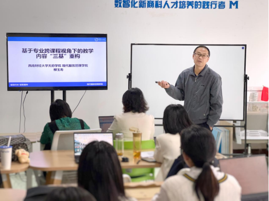会议最后议程,柳玉寿教授带来题为《基于专业跨课程视角下的教学内容“三基”重构》的主题讲座。柳玉寿以自己的《战略管理》课程为例,深度剖析了在面临跨课程教学任务时,如何紧密围绕人才培养方案、学校教学理念和学院专业特色,科学设计课程教学方法与考核方式,切实做到以学生为中心,着力培养其基础知识、基础理论、基本能力的“三基”素养。柳玉寿呼吁“让我们共同筑牢学生三基!筑牢专业三基!”引发了全场教师的强烈共鸣,会场内响起热烈的掌声,充分彰显了全体教职工对深化教学改革、提升育人质量的高度共识与坚定决心。