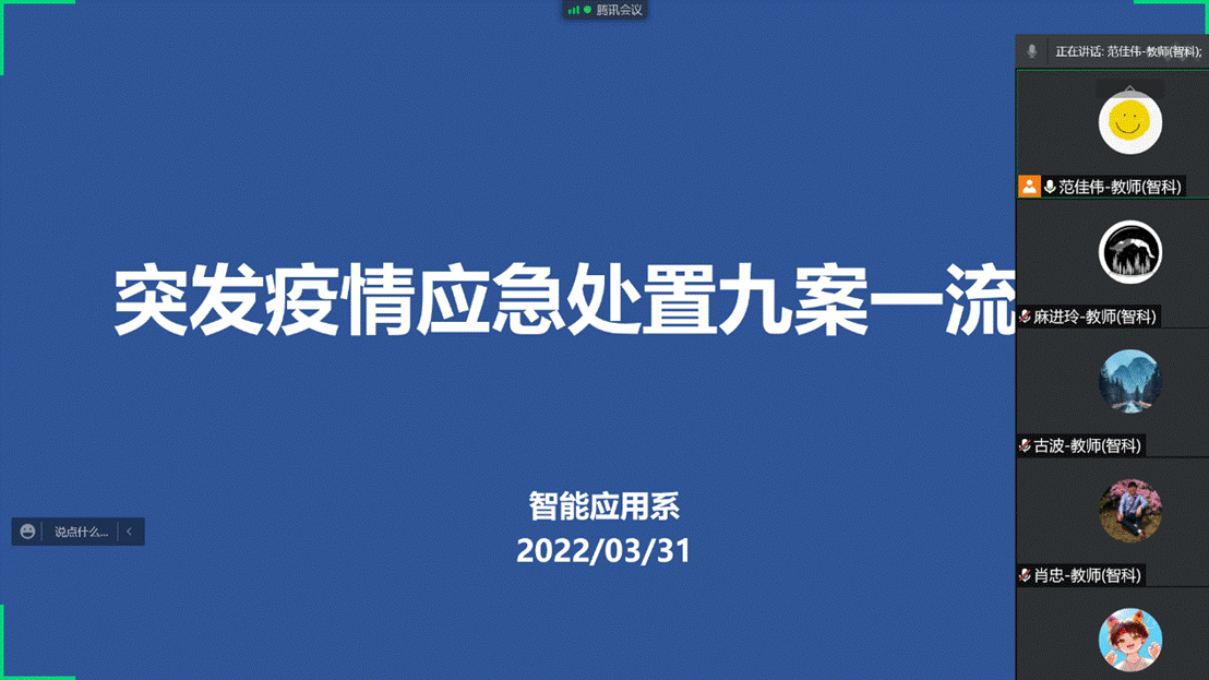 3月31日下午,智能科技学院各系以及学工综合办召开了突发疫情应急处置九案一流程学习会。智能科技学院全体教职工参加会议,各部门主任担任主讲人。