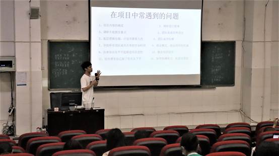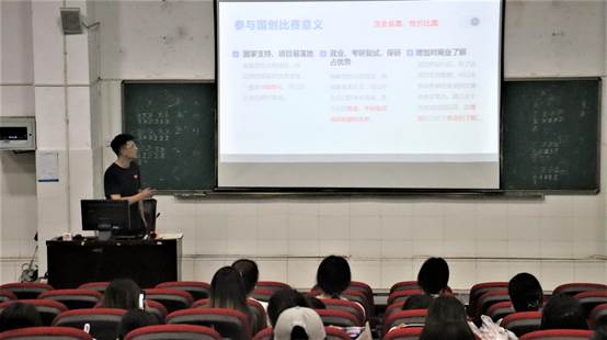 宣讲会上,杨帆向学生讲解科研是什么、科研应该做什么、科研由什么构成。书本上的知识没有掌握,那就在实践中去理解、去掌握,有想法就去验证,遇到困难就去解决。掌握、验证、解决的过程就是科研。随后,牛露航围绕“互联网+”的报名流程、国创计划相关问题、项目比赛的意义与价值、以及选题的参考与建议方面做了详细的讲解。他认为创业型的大创项目的参与对今后的实习、就业、考研等都具有深远的意义。黄杨鑫从项目确立、团队组成、调查研究和在项目中遇到的问题等四个方面分享了他的项目经验。在分享的过程中,主讲人为在座同学答疑解惑,唤起了同学们对于科技创新和自主创业的兴趣,拓宽了同学们的视野,提高了学生的眼界。