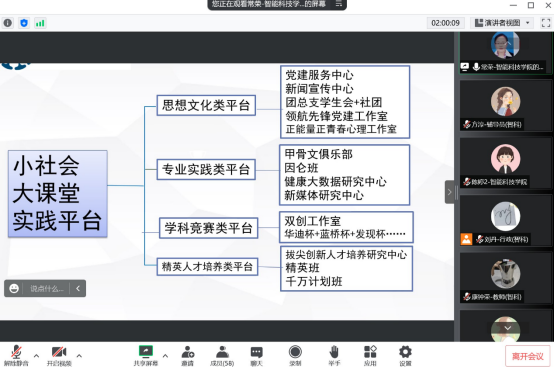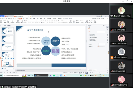 8月26日,智能科技学院在腾讯会议上召开2022年秋季学期期初工作会议,学院院长徐鸿雁、学院党总支书记常荣、副书记陈礼花、副院长陈婷、陈小宁及全体教职工参与,会议由陈婷主持。