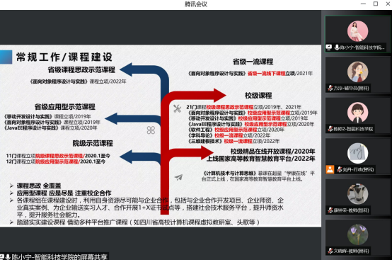 陈小宁则从常规工作和近期工作重点出发,提出各系部要结合学院学科与专业十四五建设规划,围绕应用型专业群的建设方向,完成本专科各专业的规划,确保课程思政全覆盖,注重应用型学科建设、校企合作。另一方面,一流课程申报、提交工程教育认证申请书、毕业论文抽检、无人机应用技术专业申报将作为本学期的重点工作开展。