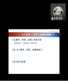 随后,王祥熙就超星、EQ教学平台建课、教学资料发布及其他教学辅助工具的使用进行了实操演示,详细讲解了操作步骤,有序回答了老师们提出的问题;羊媛就课堂教学实施与考核细则进行了解读,介绍了企业微信课堂考勤、教学考核细则等内容;郭家宏以往年制作完成的教学资料为例,详细讲解了教学资料的撰写、审核和提交上传流程,并悉心回答老师们提出的有关教学资料准备的问题;徐哲从教师科研与竞赛的关系、意义方面进行了讲解,举例介绍了新教师可以参加的各类竞赛,强调科研竞赛与职称评定等方面息息相关,鼓励老师们积极开展科研、发表文章著作及参加竞赛等。