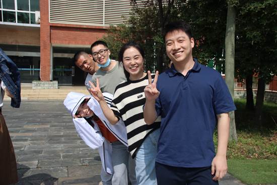 在“定时拍照”环节,每队出5位老师,抽签决定PK队伍顺序,主持人说出“开始”后,两队队员各自抢占最佳上镜位置,相机限时10s倒计时拍照,快门按下的瞬间,正脸入境人数最多的一组获胜。三局比拼争锋,学工综合办再次获得最优团队奖。