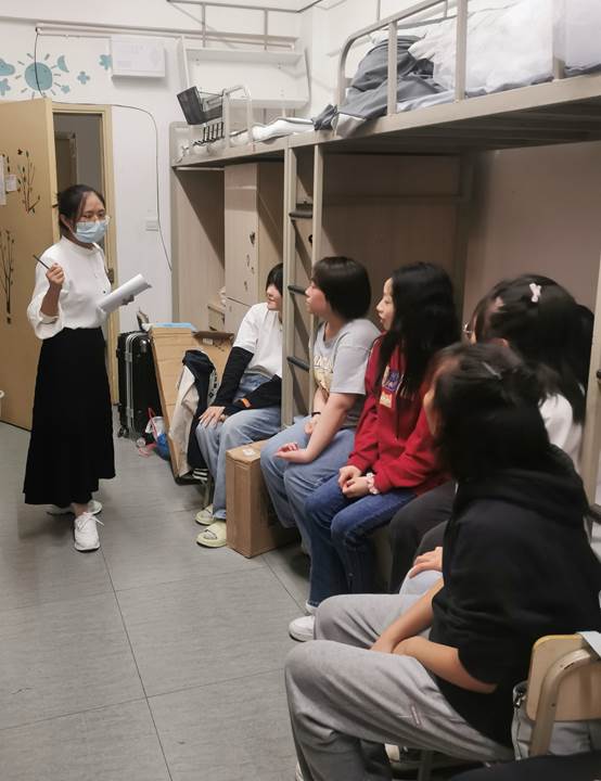 陈永清等一行人走进学生寝室,与同学们亲切交流,了解他们来到新环境的适应情况。走访过程中,新生辅导员暖心询问同学们入校后遇到的问题,贴心提醒他们遵守学生宿舍和学校规定,做好疫情防控,科学佩戴口罩,注意个人和公共卫生清洁;叮嘱他们养成良好的学习习惯,并鼓励他们将寝室打造成温馨的“小家”。辅导员们还向同学们强调宿舍安全的重要性,就寝室卫生、消防安全、违章电器等问题进行温馨提示,希望新生们积极营造一个优美和谐的寝室环境。