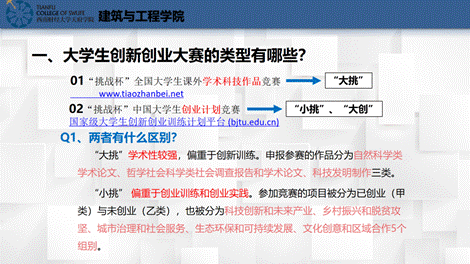 会议第一项,第九届“互联网+”大学生创新创业大赛安排部署。该项赛事是目前我国覆盖面最广,含金量最高的大学生创新创业比赛,旨在深化高等教育综合改革,激发大学生的创造力,培养造就“大众创业、万众创新”的“生力军”;推动赛事成果转化和产学研用紧密结合,促进“互联网+”新业态形成,服务经济提质增效升级;以创新引领创业、创业带动就业,。蔡佳芮从“大学生创新创业大赛的类型分类”和“大学生创新创业大赛”两个方面,介绍了大学生创新创业大赛的类型,并强调它们的区别以及创新创意的聚焦点在何处。并以往届参赛的案例作分享,介绍了创新创业计划书的撰写内容。