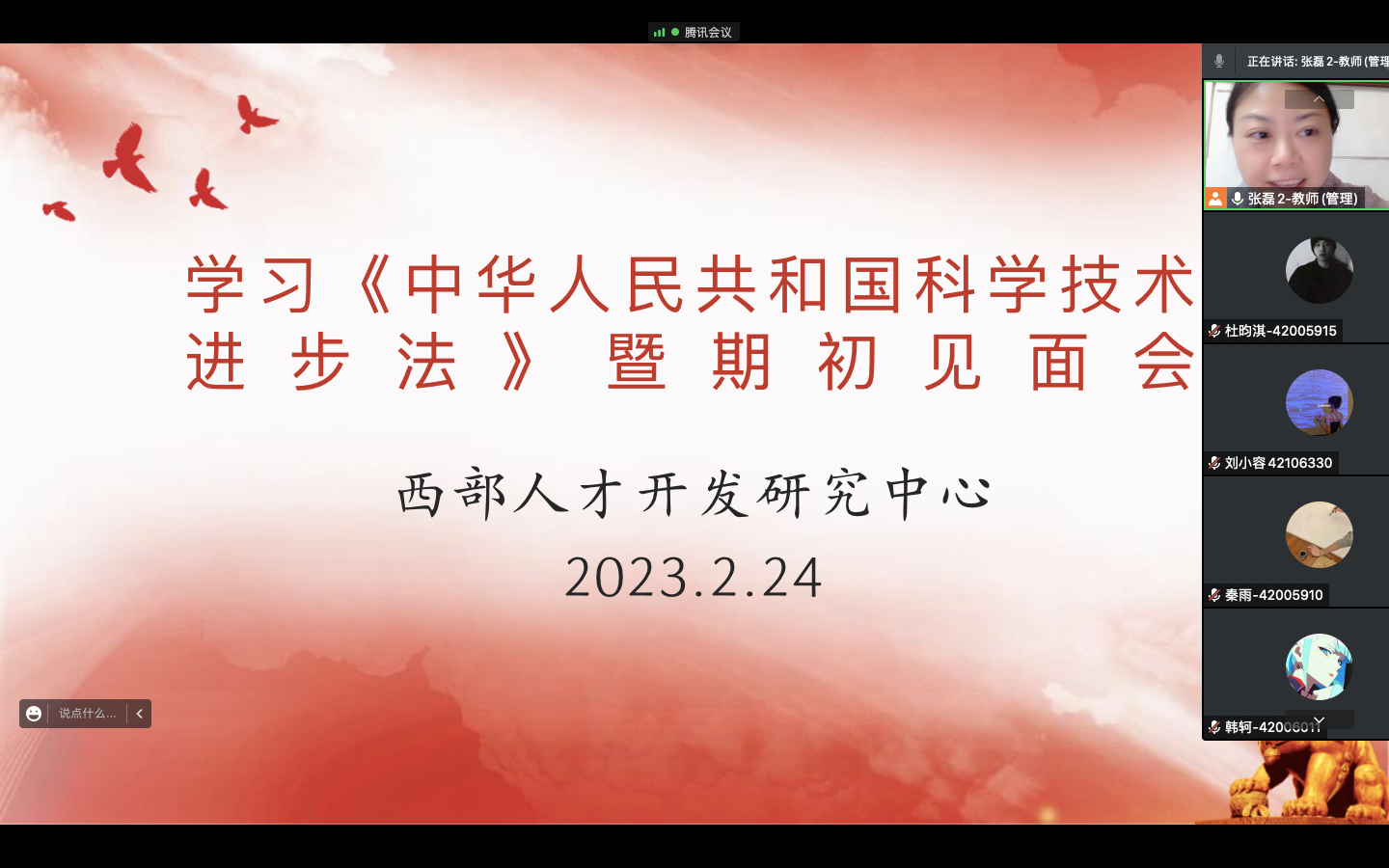 为深入学习贯彻新修订的《中华人民共和国科学技术进步法》,深刻领会新法修订的有关精神,2月24日上午,西部人才开发研究中心组织科研助理集中开展《科学技术进步法》专题学习活动。