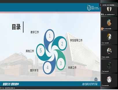 12月21日下午,现代服务管理学院工商管理系全体教师通过企业微信召开2022年度工作总结会,学院院长助理刘宇应邀参加会议,杜民帅主持会议。