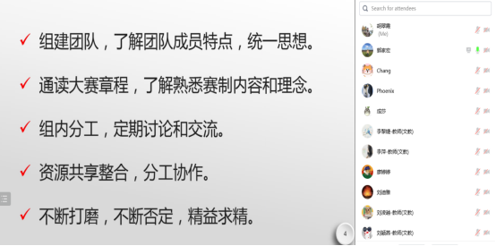 郭家宏结合自己团队的备赛经验,依次介绍了2022年外研社“教学之星”(高职高专组)备赛团队的成员构成及具体分工,并结合大赛章程带领老师们详细解读了大赛的参赛方式、参赛材料、评分标准等,尤其详细介绍了撰写教学设计方案过程中应该注意的事项。随后,他邀请团队成员郑旭介绍了授课视频制作过程中遇到的困难、存在的不足以及未来的努力方向。最后,公外部主任胡翠霞鼓励老师们积极报名组队参加2023年“教学之星”大赛,并预祝老师们获得更好的奖项。