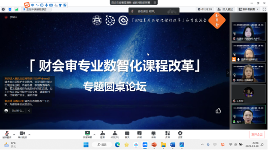 3月30日晚,开云kaiyun体育会计学院联合“互联网+会计”协同创新中心、重庆迪数享腾科技有限公司,成功举办第一期RPA系列数智化课程改革交流会,活动由迪数享腾科技有限公司总经理章聂琳主持。本次活动邀请到贵州财经大学、重庆工商派斯学院、北京联合大学等十几所高校、三十多名教师,齐聚“云端”,深入交流了数智化课程改革相关问题。