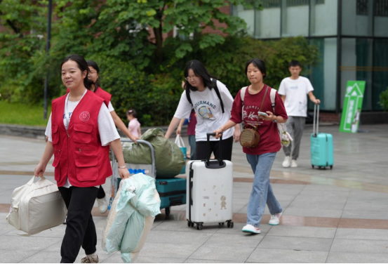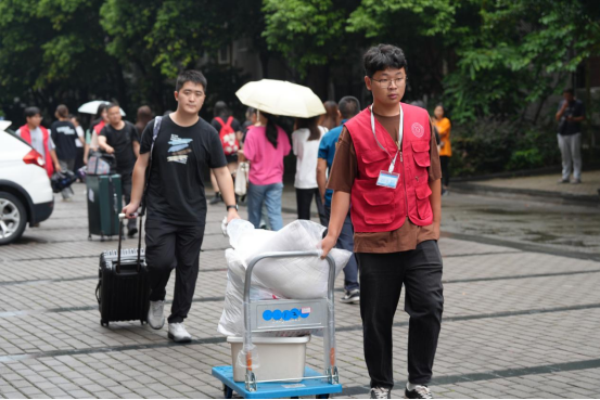 身穿红马甲的志愿者们,从新生手中接过一件件行李,一趟趟来回穿梭在从校门口到学生公寓的人群中,一声欢迎、一个微笑、一次讲解,汇聚了他们的热情与期待,在校园中形成一道靓丽的风景线,他们的暖心服务成为学院一张张生动的名片。校园里处处洋溢着温馨和谐的气氛,传递着学院对新生们最热烈的欢迎和最美好的祝福。