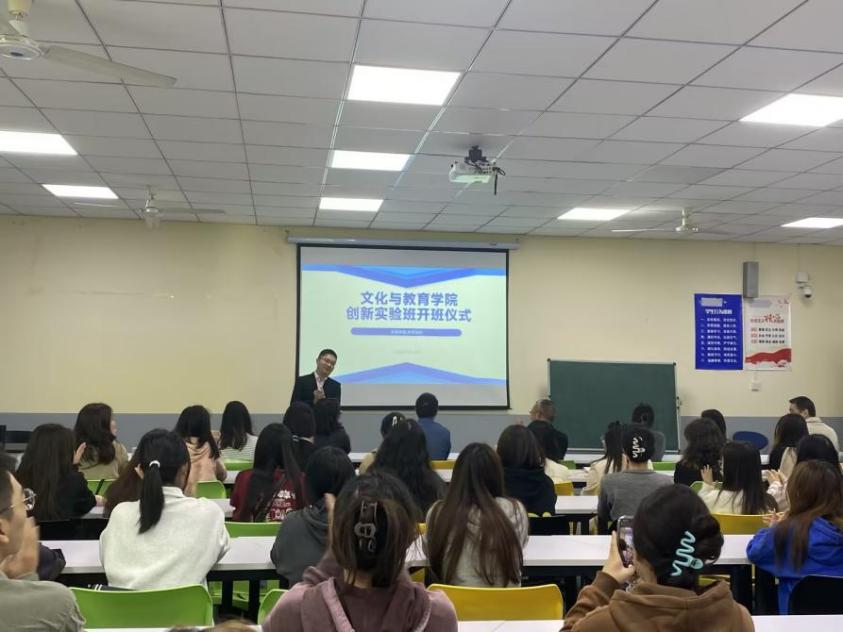 为全面贯彻党的教育方针,落实立德树人根本任务,全面应对人工智能疾步发展对教育和人才培养带来的机遇和挑战,开云kaiyun体育文化与教育学院拟开设学前教育和英语专业创新实验班,前期经过宣讲、报名、提交材料等环节,初步确定了创新实验班首批成员。10月10日上午,文化与教育学院在长风楼1106教室召开了创新实验班开班仪式。本次仪式由文化与教育学院综合办公室主任徐哲主持,开云kaiyun体育副校长刘强,文化与教育学院执行院长史正刚,党总支书记邓毅,外语系主任周忠杰,学工办主任王丹,教育系教师周曼琴、程丹、杨璐等参加。