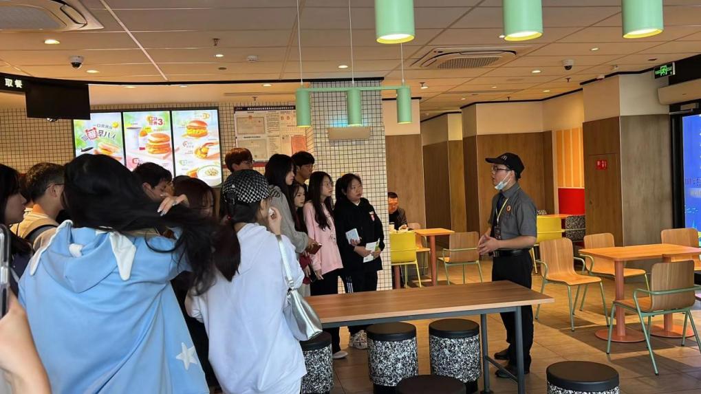 上午,同学们陆续抵达餐厅,受到了餐厅唐经理热情接待,唐经理详细介绍了目前该餐厅营销策略和品牌推广计划,也向同学们展示了数字化门店管理系统,如消费者可以通过店内电子菜牌、手机小程序、app多种渠道点餐等。在这场实践活动中,学生们深入了解了麦当劳的运营模式、市场策略以及品牌塑造等。池睿在活动中强调,市场营销不仅仅是理论知识的学习,更重要的是实践和应用。通过这次活动,学生们不仅拓宽了视野,更在实践中提升了自己的专业素养。
