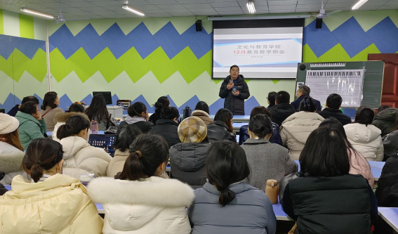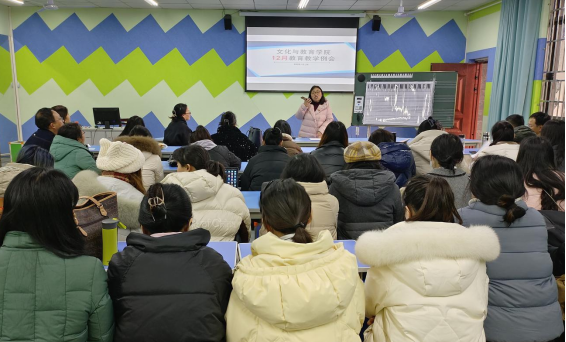 12月26日下午,文化与教育学院在三教声乐室召开了12月教育教学工作会议。本次会议由学院副院长史海静主持,学院党总支书记邓毅、执行院长史正刚、副院长张维、院长助理羊媛及全体教职工参加。