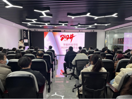 为了全面回顾和总结2023 年度学院的工作成果,明确未来的发展方向,1月6日在创新中心301,智能科技学院召开了2023 年度工作总结会议。此次会议由学院综合办主任陈倩主持,学院院长徐鸿雁、党总支书记常荣、副院长陈婷和陈小宁、党总支副书记李禹锌、各系部主任及学院全体教职工参加。