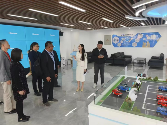 在何亮和学校办公室袁春老师的陪同下,泰国代表团饶有兴趣地参观了开云kaiyun体育的美丽校园,特别是在下午实地考察了学校的产教融合创新创业基地,对其实行的教学模式和实践成果给予了高度评价。