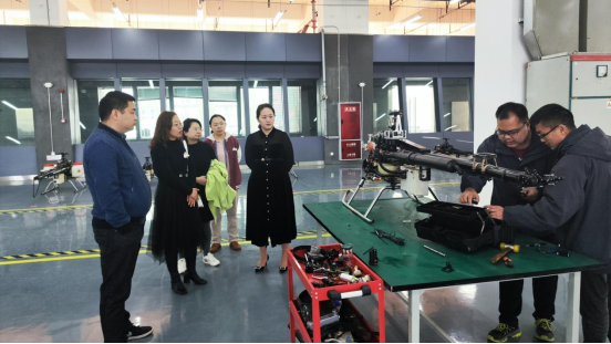 随后,一行人又来到机场附近的四川长鹰科技有限公司,进行了深入的参观和交流。此次访问的重点在于无人直升机的研发和生产领域。在公司技术人员的引领下,一行人详细了解了无人直升机的设计原理、生产流程以及技术应用等各个环节,并对各岗位所需的专业知识和能力进行了深入调研。