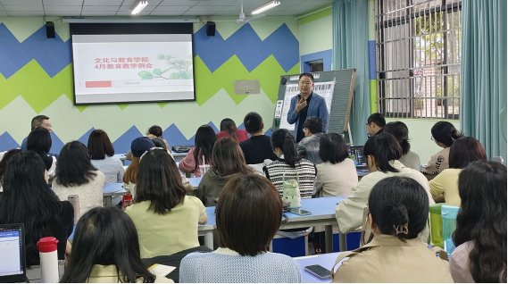 4月23日下午,文化与教育学院在三教声乐室召开了4月教育教学工作会议。学院执行院长史正刚、党总支书记邓毅、副院长张维、史海静、院长助理羊媛及全体教职工参加。