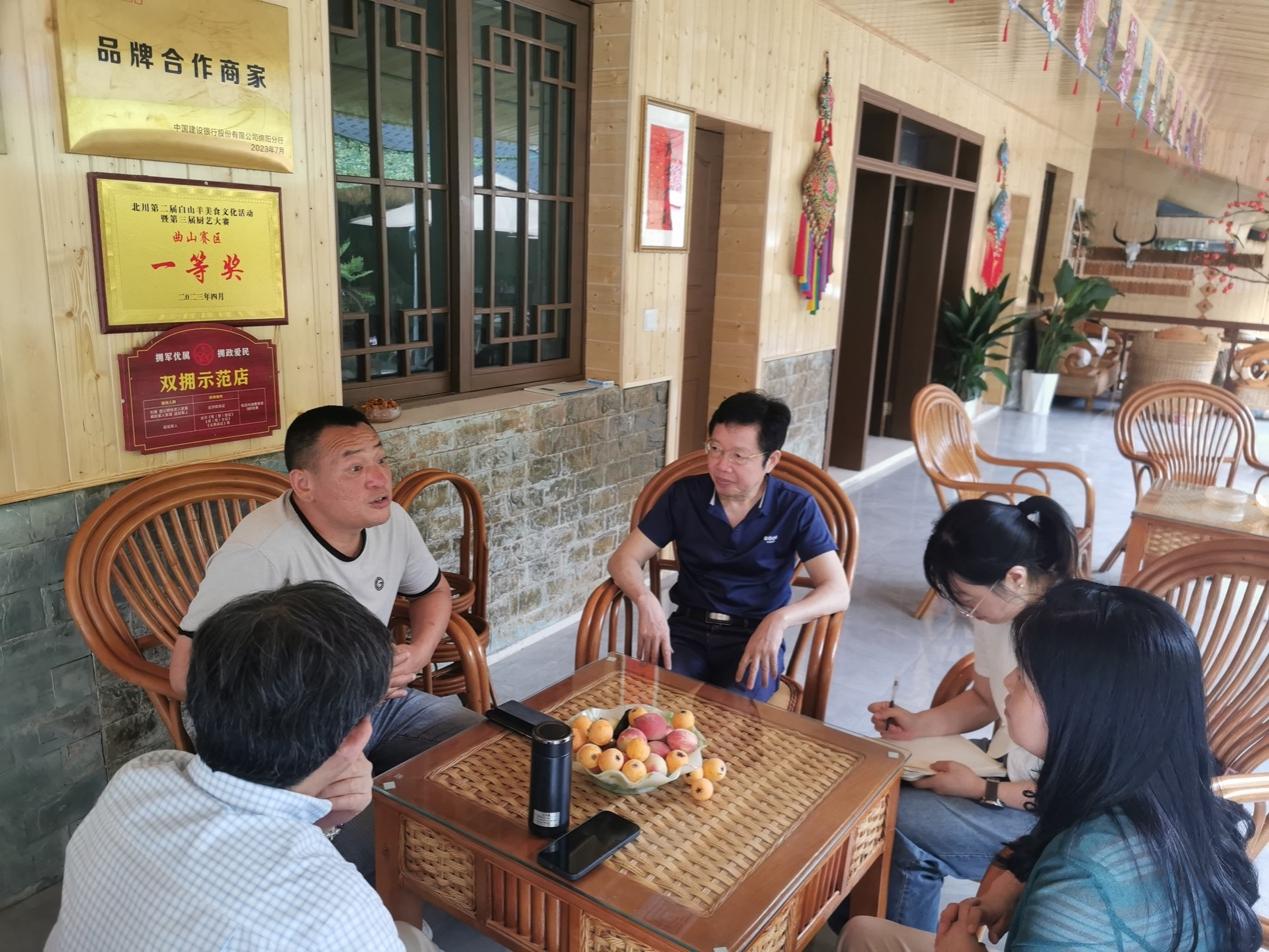 下午1点,调研团队来到北川羌族自治县曲山镇石椅村。这是一个历史悠久、民族文化浓厚的羌族村落,是震后北川第一个完成风貌再造的村落,2021年被认定为全国“一村一品”示范村镇。2023年1月18日,习近平总书记春节前夕视频连线慰问基层干部群众,石椅村作为全国乡村代表,得到了总书记的慰问和点赞。村民委员会主任、党支部书记陈爱军讲述了石椅村的奋斗历程,其中加强基础设施建设、做好群众期盼的事,是石椅村飞跃发展的基本经验。孟建伟建议乡村振兴科研团队做好田野调查,形成调研成果,为实现民族地区的共同富裕,给出可操作性的对策建议。