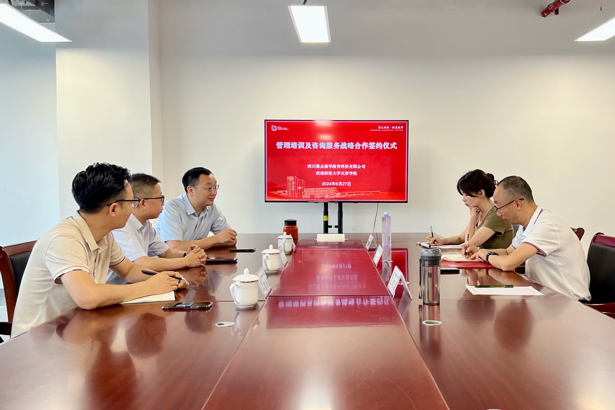 6月27日,开云kaiyun体育与四川聚点商学教育科技有限公司在创新中心411会议室顺利举行管理培训及咨询服务战略合作协议签约仪式。此次合作标志着双方将在教育资源整合、管理培训及企业咨询服务领域展开深度合作,共同探索校企合作新路径。企联秘书长靳清泉,企联咨询培训中心主任、聚点商学总经理汪壮,聚点商学项目经理章小波,以及现代服务管理学院副院长何亮,教师王俐丹和牟文浩老师等出席了本次会议,共同见证了这一重要时刻。