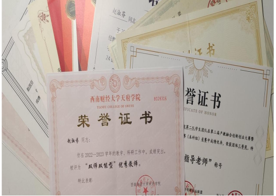 赵淑芬老师积极参加教改科研工作,她将育知和育德有机融合,指导学生参加重大竞赛并获得多种奖项,入职十年来,深受学生的爱戴。