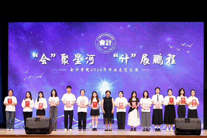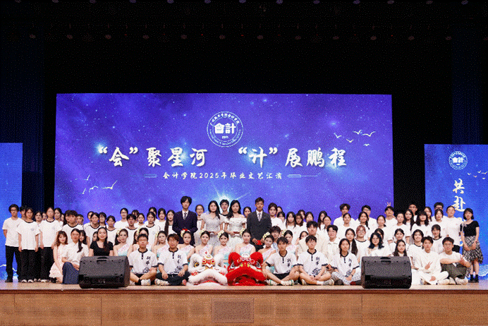 “会”聚星河,“计”展鹏程。本次文艺汇演不仅为会计学院毕业学子送上师生们对于他们最真挚的祝福,更彰显了会计学院始终坚持以立德树人为根本任务,培育德才兼备、全面发展的优秀学子,树立优良的学院学风的决心。未来,会计学院将继续为“三全育人”“五育并举”体系建设做出不懈努力,让美育之花绽放于校园之中,让学子风采展现在舞台之上。