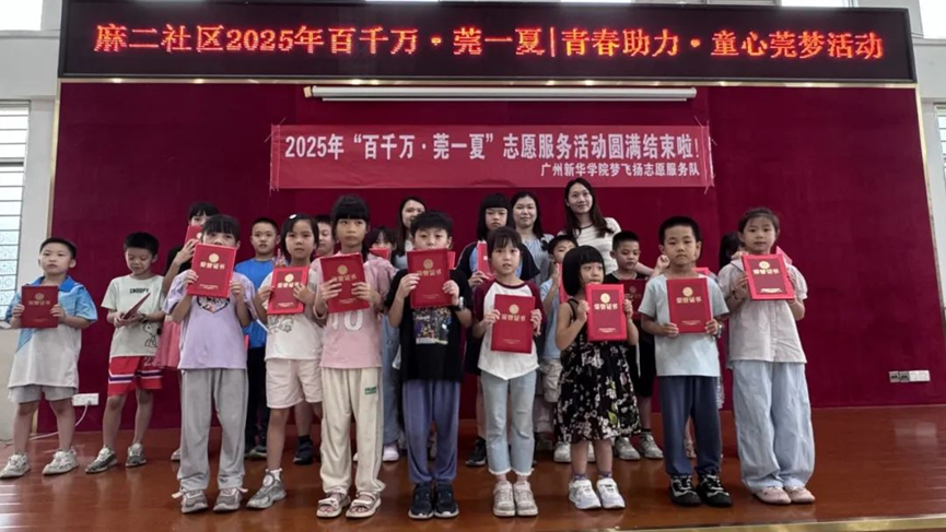 此次“百千万·莞一夏”系列活动中,学校五支志愿服务队充分发挥学科优势与专业特长,整合校地企社多方资源,围绕文化传承、艺术启蒙、科学普及、心理健康等方面,为东莞多个典型村的儿童带去了充实而快乐的暑期体验。新华学子不仅在服务中锤炼了本领、提升了社会责任感,更以实际行动为“百千万工程”注入了青春动能,展现了广州新华学子昂扬向上、奉献有为的精神风貌。学校将继续鼓励和支持青年学子深入基层、服务社会,为广东省高质量发展贡献更多青春力量。