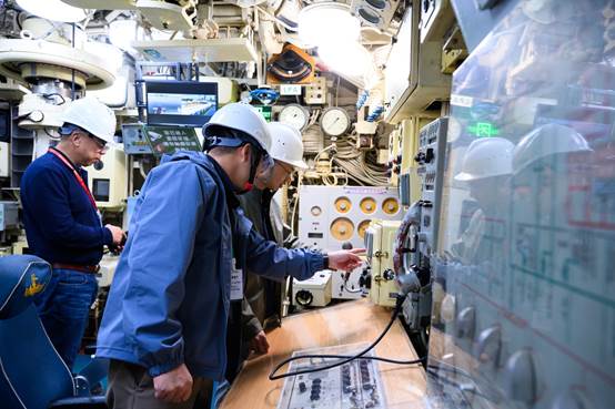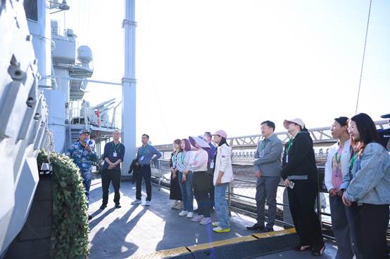 首站湛江军博园,党员们登临我国首艘现代化改造的051GI型驱逐舰“湛江舰”及基洛级潜艇,聆听退役海军官兵讲述装备服役历程。舰体斑驳的锈迹与精密仪器形成鲜明对比,让党员们直观感知“从近海防御到远海护卫”的国防跨越。机关党委书记刘艳在现场教学中表示,这些“钢铁脊梁”见证着强国征程。作为教育工作者,我们要将强军精神融入课程思政,引导青年学子以专业报国,筑牢国家安全人才基石。