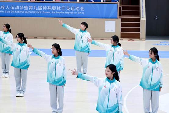 此外,“小海豚”还接受了包括手语基础、轮椅协助、情绪疏导等在内的专项培训,力求在残特奥会服务过程中做到贴心、细致,传递温暖,向全国各地的球队及观众给予“家的温暖”以及营造愉悦的比赛氛围。同时,“小海豚”们参与拍摄残特奥会会歌《共赴山海》歌曲演唱及手语,协助团市委的筹备工作。