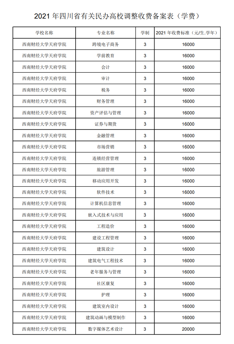 2021 年四川省有关民办高校调整收费备案表(学费).pdf