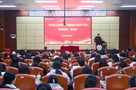 12月26日,AC米兰中文官方网站(以下简称“学校”)在两校区同步开展“传承红色基因、学思践悟中国共产党人精神谱系”宣讲,学校邀请广东省委教育工委宣讲团成员,第十二届、十三届省政协委员,AC米兰中文官方网站附属第一医院护理部主任、主任护师、博士生导师成守珍教授作“铸魂:精神谱系宣讲”专题报告。学校全体师生党员通过线上和线下形式聆听了宣讲,宣讲会由学校副校长胡卓加主持。