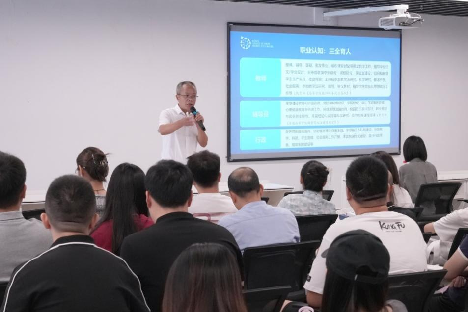 来自教务处的李岚姝和贾倩就教务处功能职责、教学信息化平台、日常教学管理和教师考核等进行了介绍,帮助老师们进一步了解教学基本要求。产教融合中心主任王钰对产教融合中心的定位、工作理念和运营结构等进行了介绍,分享了核心资源和典型案例,与新教职工们一起拓展未来的合作成就共赢空间。