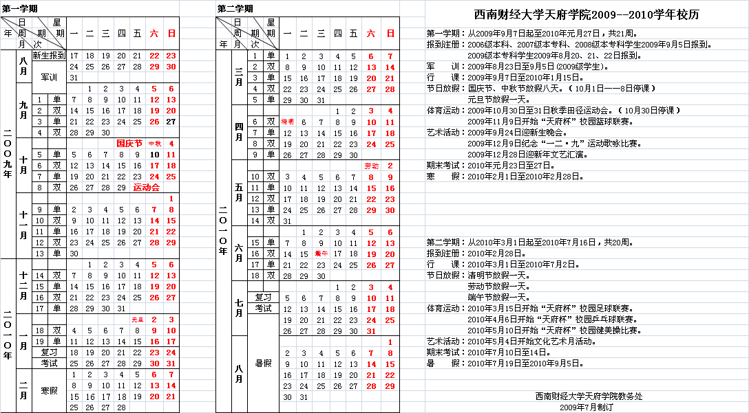 2009-2010学年校历