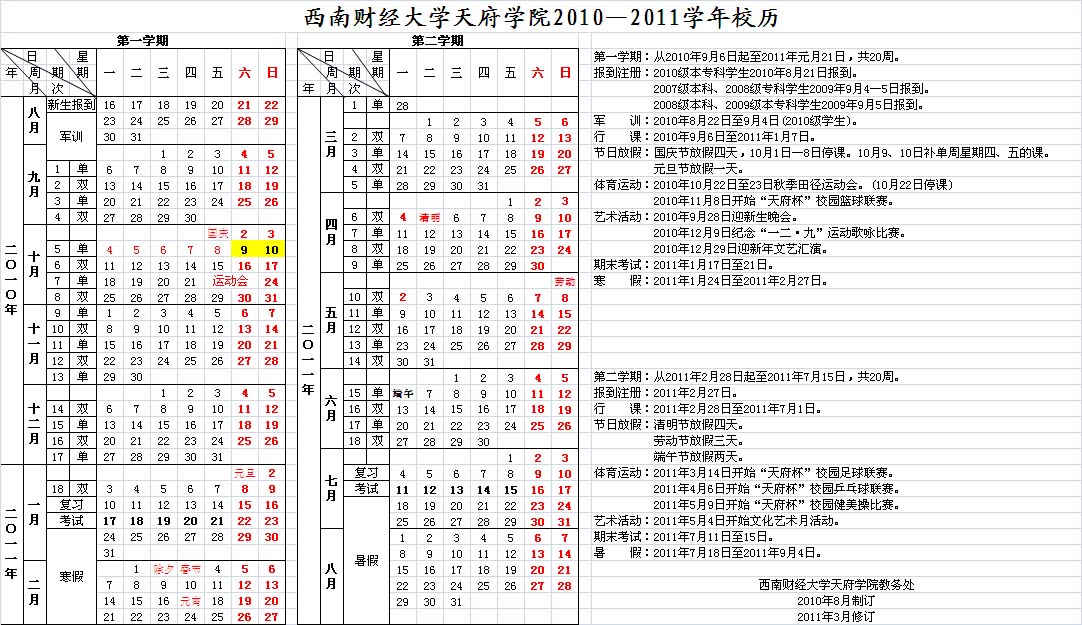 2010-2011学年校历